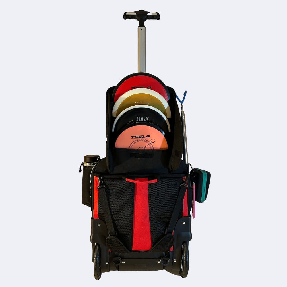 Der Airbaxx REVOLUTION Roller Bag revolutioniert den Transport deines Discgolf-Setups. Die intelligente Kombination aus Rucksack und voll integriertem Roller-System sorgt dafür, dass du den Großteil deiner Runde entspannt rollst – und nur dort trägst, wo es wirklich notwendig ist.